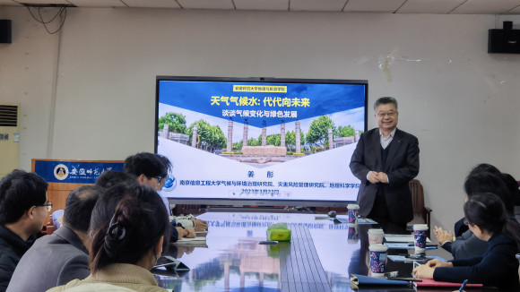 2023年3月23日是第63个世界气象日,南京信息工程大学气候与环境治理研究院执行院长、灾害风险管理研究院院长、地理科学学院博士生导师姜彤教授一行应邀来36365官网,姜彤围绕2023年世界气象日“天气气候水,代代向未来”的主题,作了题为“天气气候水:代代向未来——谈谈气候变化与绿色发展”的学术报告。报告由院长方凤满教授主持,学院相关专业教师、研究生和本科生参加了本次报告会。