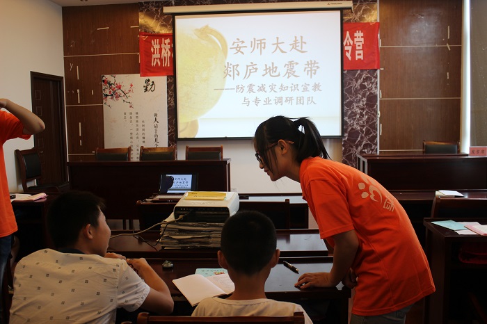 7月1日,安师大赴郯庐断裂带“防震减灾”宣教调研团队第一站——芜湖市第十二中学。走进课堂,实践队员们用幻灯片及知识手册,向中学生宣讲防震减灾的知识,调动同学们对防灾减灾知识的热情;队员们发放调查问卷,明确大家对地震的了解程度和关注意识;走出课堂,队员们带领中学生们参观芜湖市科技馆,并在地震模拟房间里,亲自体验了6级地震时的情境,并利用刚学到的知识开展防震自救。
