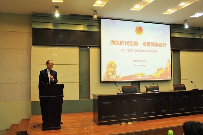 本网讯(bet36365路检测中心 孙常慧)适逢五四运动100周年, 4月28日下午,bet36365路检测中心团委于院实验楼101报告厅举办纪念五四运动100周年主题团日活动。院团委书记吴辉携2018级地理学、城乡规划专业全体学子,共赏影片《我的1919》,以实际行动纪念五四运动。历社学院团委书记宫超受邀参加活动。