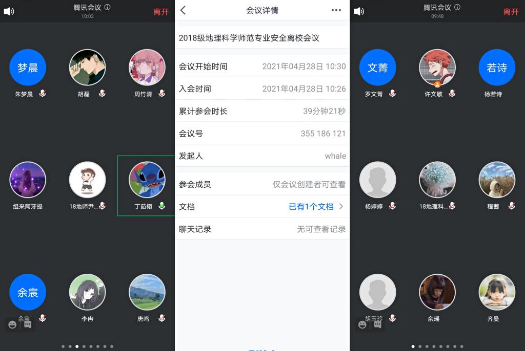 本网讯(bet36365路检测中心 丁茹栩 罗文菁)4月28日上午10点半,为增强同学们的安全意识,2018级地理科学(师范)专业通过网络平台的形式举行五一安全离校会议,此次会议由辅导员丁茹栩主持,2018级地理科学(师范)专业全体成员参加。