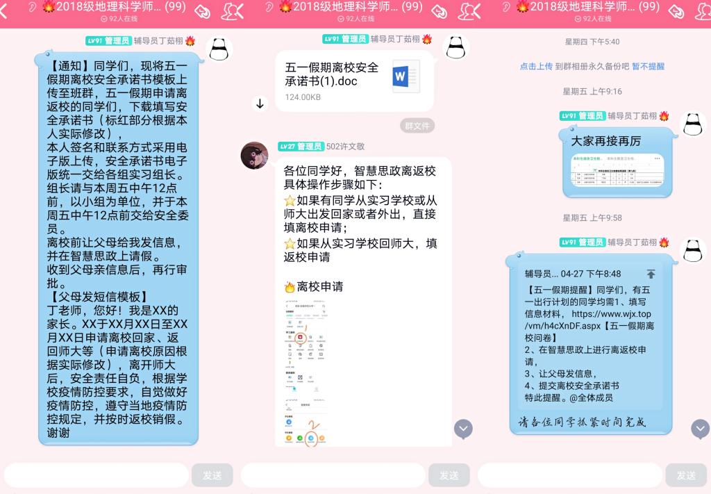 最后,丁茹栩预祝同学们五一假期快乐,并再次强调了要自觉做好疫情防控措施,遵守当地疫情防控规定!