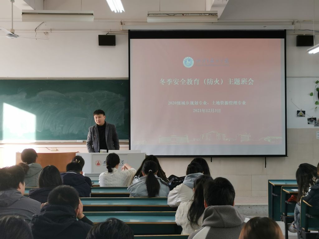 本网讯 (bet36365路检测中心 刘少杰 张楠)为加强安全教育,提高学生安全防范意识,12月3日上午,2020级城乡规划和土地资源管理专业召开冬季安全(防火)教育主题班会。本次主题班会由辅导员刘少杰主持,2020级城乡规划和土地资源管理专业全体学生参与。