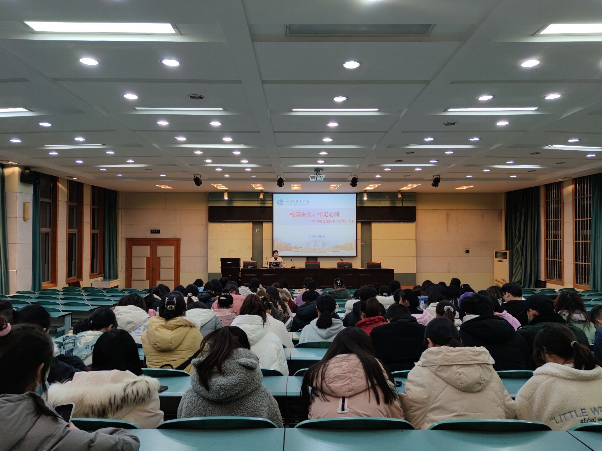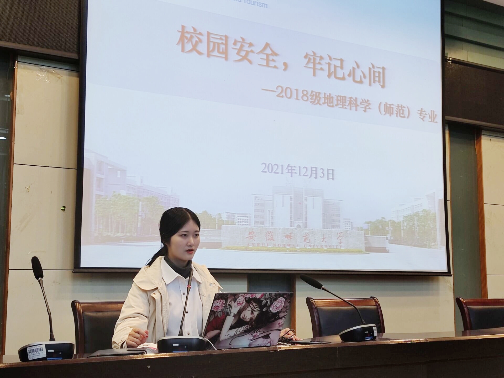 本网讯(bet36365路检测中心 丁茹栩 尹仟仟)为进一步增强学生安全意识,做好冬季校园安全工作,降低安全隐患,保障校园安全,12月3日,2018级地理科学(师范)专业在院实验楼101报告厅举行“校园安全,牢记心间”主题班会。班会由辅导员丁茹栩主持,2018级地理科学(师范)专业全体学生参与会议。